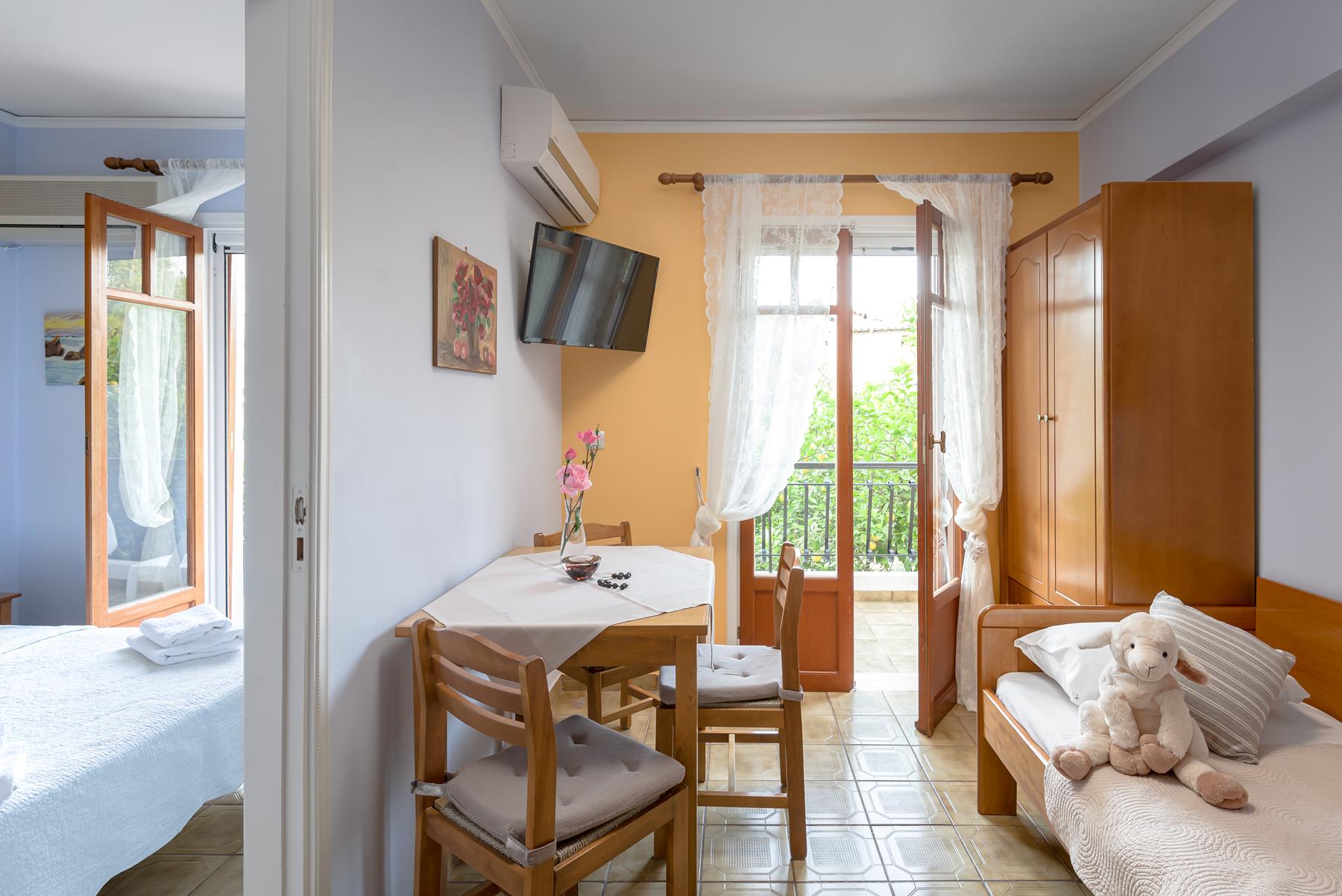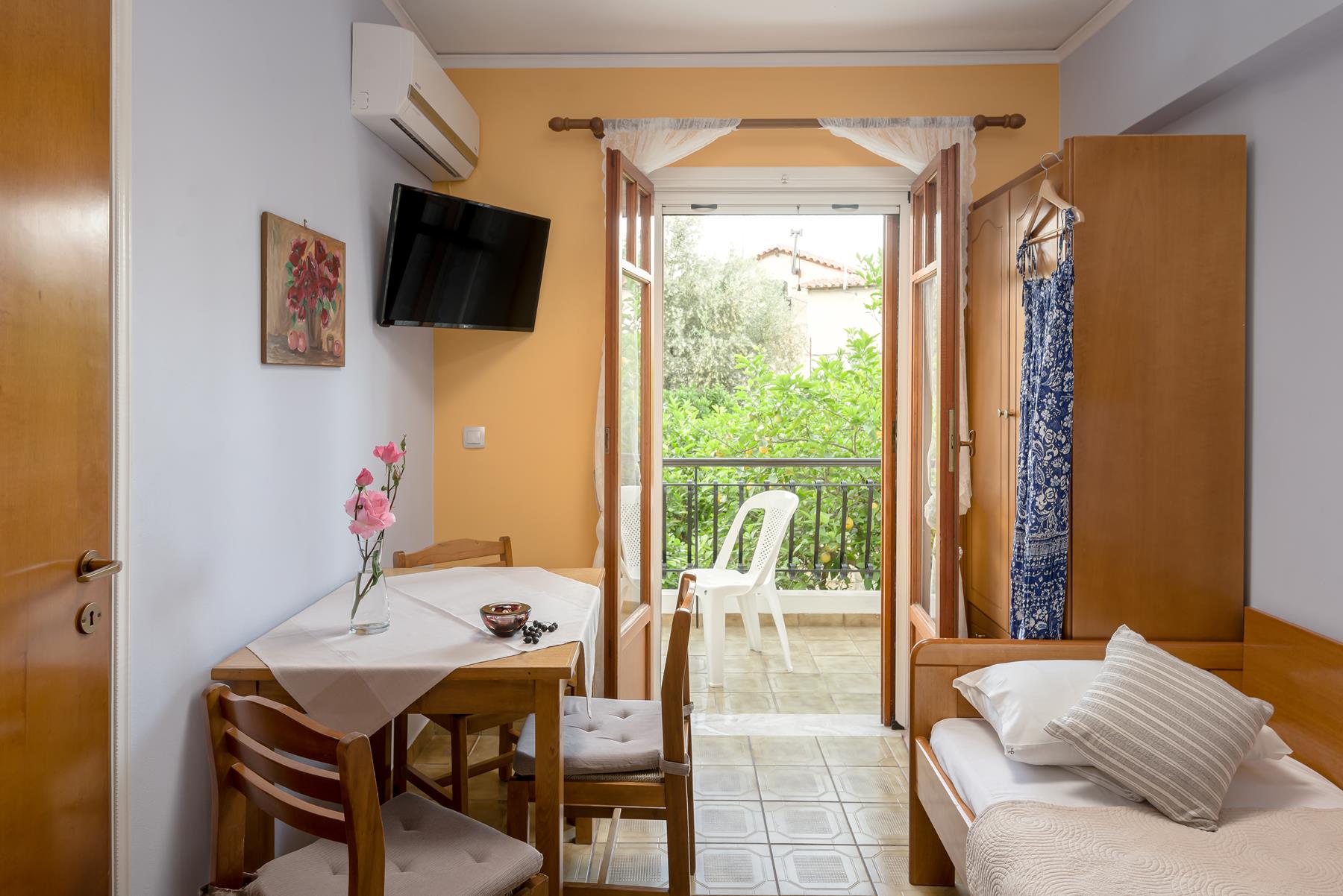 Διαμέρισμα Premium με θέα κήπο ή θέα θάλασσα. Με ένα υπνοδωμάτιο των 28 τ.μ., καθιστικό και καινούριο μπάνιο με ντους. Η ατμόσφαιρα του χώρου είναι ήσυχη και χαλαρωτική. Άνετη τραπεζαρία/καθιστικό με ένα μονό κρεβάτι και ένα υπνοδωμάτιο με ένα διπλό κρεβάτι – κατάλληλο για ένα ζευγάρι ή για 2-3 ενήλικες ή/και ένα μικρό παιδί σε μία βρεφική κούνια.